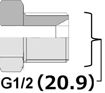G1/2 ソケット(メネジ)シートメス ネジ20.9は谷側ネジサイズなので20.9より小さく見えます |